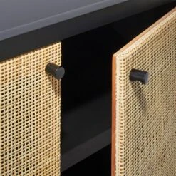 - Rattan-like woven doors offer a breezy look
